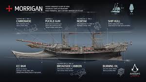 Morrigan dilengkapi dengan pelbagai senjata perang seperi broadside cannon, burning oil dan banyak lagi. Disebabkan game ini berlatar belakangkan kawasan sejuk beku (North Atlantic Ocean), Morrgian juga dilengkapi dengan ICE RAM untuk memudahkan kapal bergerak di kawasan lautan yang membeku.